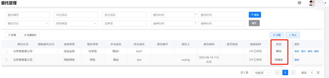 看列表上的顯示狀態(tài)可以清楚的看到,被接收的訂單顯示狀態(tài)為“已接收”,被退回的訂單顯示狀態(tài)為“退回”;退回的訂單可以重新修改并且提交。